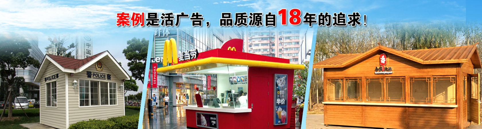 公司主要生產各類崗亭,包括高速公路收費亭系列、治安崗亭、交通崗亭、售貨亭、公交亭、書報亭、小區(qū)崗亭等,崗亭材質齊全有:不銹鋼崗亭、鋼結構崗亭、鋁塑板崗亭、玻璃崗亭、木制崗亭、金屬雕花板崗亭、PVC掛板崗亭等,適用于各政府機關、道路交通、機場港口、地產建筑等多個行業(yè)領域。